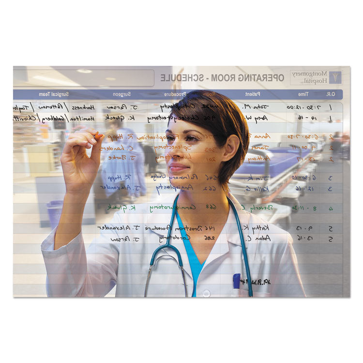 - A clear and flexible dry-erase lens lays over your printed design and provides a writing surface that will not stain or ghost.