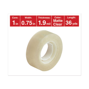 Be as subtle or as obvious as you wish to be. Matte finish tape disappears on contact, but it also accepts ink and pencil marks. Whether you want your repairs to be invisible or your labeling notes to be noticed, this is the right tape for the job. Enhanced adhesive holds tight to most dry, nonporous surfaces. Resilient backing is ideal for repairing damaged documents and sealing correspondence. Standard-core rolls fit most desktop-tape dispensers.