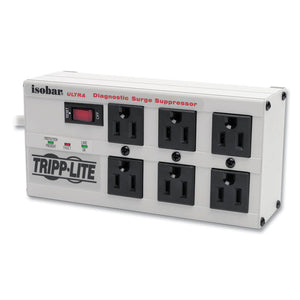 Isobar Surge Protector, 6 AC Outlets, 6 ft Cord, 3,330 J, Light Gray