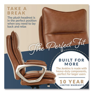 Jenkins Executive Big and Tall Chair, Supports Up to 400 lb, 20" to 23" Seat Height, Brown Seat/Back, Silver/Black Base