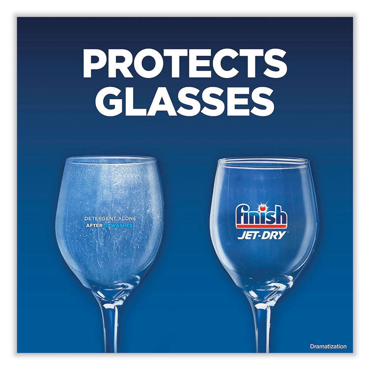 Simply fill your machine's rinse aid compartment with Finish Jet-Dry 3-in-1 to solve three problems at onceit rinses, dries, and shines what detergent alone can't! Rinses away leftover food and film. Dries left behind water droplets. Clears spots for a brilliant shine. Easy to use, simply refill the rinse aid compartment every few weeks, not every wash.