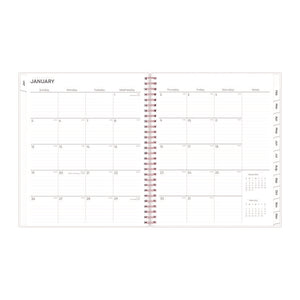 Dated planning pages range 12 months from January to December and include six bonus past monthly views for easy yearly transitions. Two page per month spreads feature ruled daily blocks, notes column, Sunday through Saturday scheduling, count of days/days remaining, holidays and past and future months reference. Monthly tabs are coated for durability. A flexible frosted cover adorns the outside while twin-wire binding and durable, coated tabs offer easy page turning and access to past, present and future months. Thick, premium quality, acid free pages reduce ink bleed through. Includes six bonus monthly views (July-Dec).