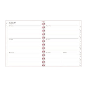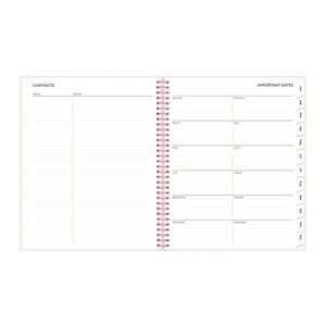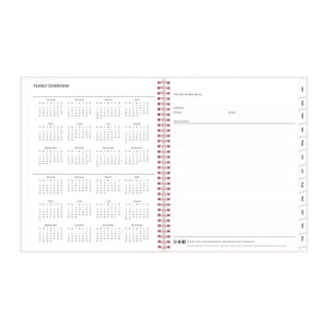 Elegant florals to accent your everyday scheduling. Weekly calendar view per two-page spread contains ruled space for your daily schedule Two page per month spreads feature ruled daily blocks, Notes column, Sunday through Saturday scheduling, count of days/days remaining, holidays and past and future months reference. A flexible frosted cover adorns the outside while twin-wire binding and durable, coated tabs offer easy page turning and access to past, present and future months. Includes six bonus monthly views (July - Dec).