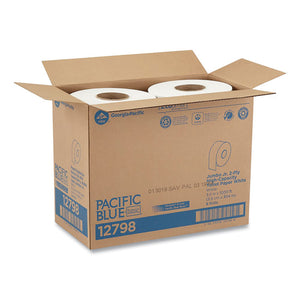 This Pacific Blue Basic™ jumbo bathroom tissue meets EPA guidelines for minimum post-consumer waste and is an economical choice for customers with high-traffic washroom areas that are concerned with sustainability. Ideal for washrooms in public facilities, schools, industrial/manufacturing, retail stores, and cafeterias/quick service restaurants, this jumbo-sized roll offers reduced maintenance intervals and greater customer satisfaction. Economical white tissue helps you stay in the black. Standard Jumbo Jr. sizing.