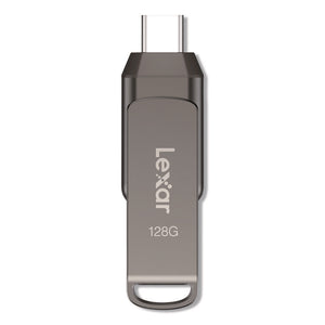 The Lexar JumpDrive D400 is a two-in-one flash drive that allows you to seamlessly transfer content between your USB Type-C and Type-A devices. Featuring a stylish metal casing and swivel design for added protection, this drive is as tough as it is fast, with transfer speeds up to 130 MBps.
