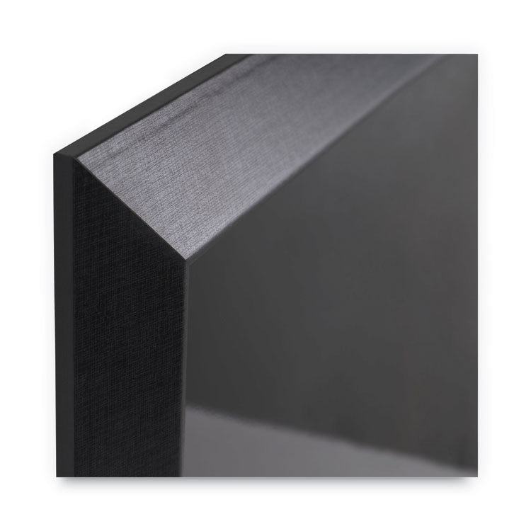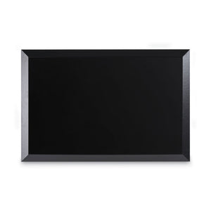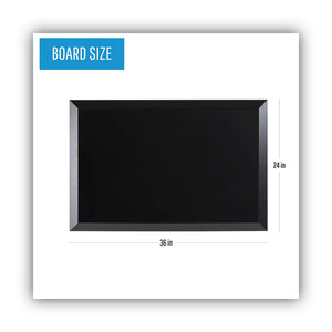Black wet erase board features a magnetic surface that accepts chalk-based wet erase markers for intense color contrast that resists smudging. It's perfect for magnetically posting messages as well as making hand-written notes. The beveled frame has a black linen texture and can be mounted vertically or horizontally.