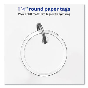 Key Tags with Split Ring, 1.25" dia, White, 50/Pack