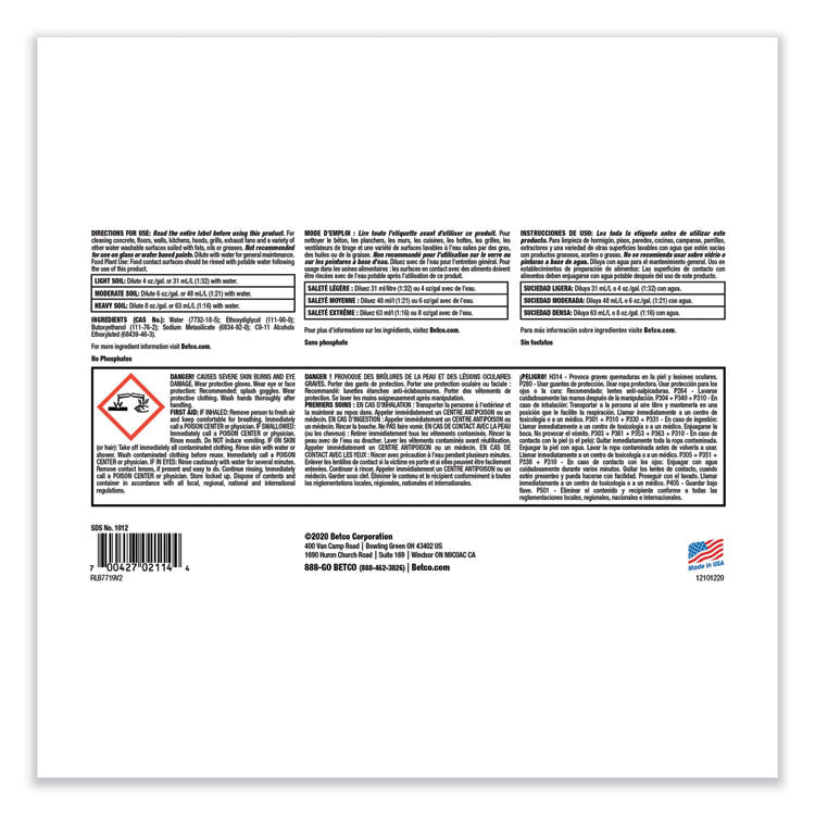 View Details- Formula emulsifies soil types such as fats, oils and greases.