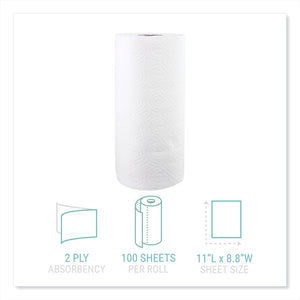 Kitchen Roll Towels, 2-Ply, 11 x 8.8, White, 100/Roll, 30 Rolls/Carton