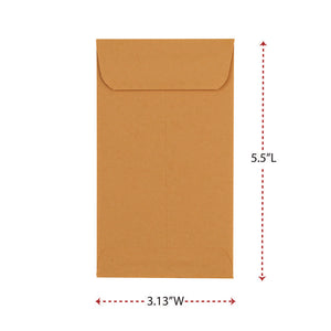 Kraft Coin Envelope, #5 1/2, Round Flap, Gummed Closure, 3.13 X 5.5, Light Brown Kraft, 500/box