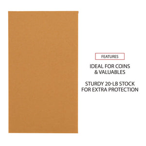 This is the ideal small envelope for coins and other valuables. Deeply gummed flap provides a secure seal. Sturdy stock ensures extra protection.