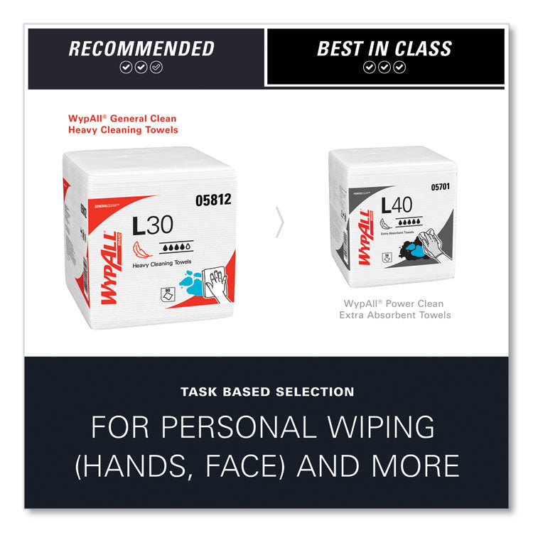 Regardless of your task, industry or budget, our WypAll® wipes, towels and cloths are designed to give you the durability, absorbency and versatility of a laundered cloth with the cost efficiency and hygiene of a disposable. When you're looking for a lighter-weight towel at an everyday great price, you can trust WypAll* L30 Towels. They are designed with the DRC (double re-creping) process, which gives you high surface softness (a cloth-like feel) with a reinforced grid that's strong for wet surface wiping and cleaning. These WypAll* L30 Towels are a great choice to replace air laid towels. They're soft enough to use on skin, so they're popular for use in healthcare and patient care. They're also tough enough for light-duty processing, janitorial tasks and maintenance (as an alternative to cloth rags). These towels are a trusted tool to help you get the job done right. As we look towards the future, Kimberly-Clark Professional is committed to providing a wide collection of essential products and services that help make your workplace exceptional. Our dedication to innovation has helped businesses confidently navigate change and empowered people at work for nearly 150 years and we are committed to do so for years to come.