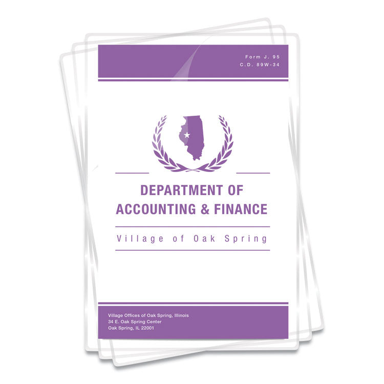 Laminating Pouches, 3 Mil, 9" X 14.5", Gloss Clear, 50/pack