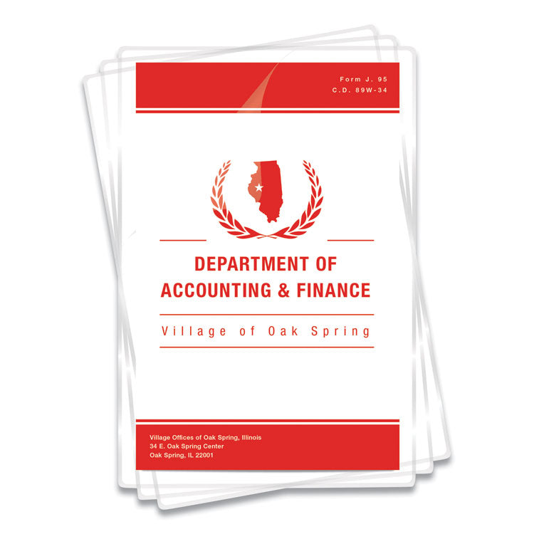 Laminating Pouches, 5 Mil, 9" X 14.5", Gloss Clear, 100/pack