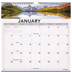 Explore a different picturesque landscape each month. Features full-color photos. One month per page with unruled blocks. Past and future months reference; federal holidays highlighted. White wirebound with hanging loop. Printed on high-quality paper with superior ink bleed resistance.