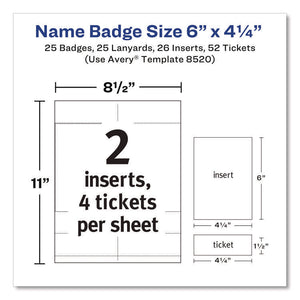 Lanyard-Style Badge Holder W/laser/inkjet Inserts, Top Load, 4.25 X 6, We, 25/pk