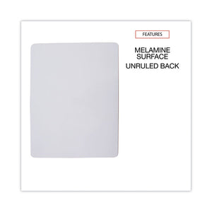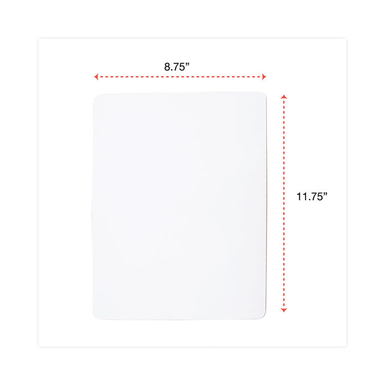 Convenient lap boards for school, customer displays, or quick visual communication. Double-sided, hardboard, dry-erase, melamine boards. Easy to wipe clean for repeated use. Durable frameless hardboard material. Perfectly sized, the handheld boards are great for practicing penmanship, math facts, or games. Also great for visual displays, signage, or quick notes in the office or commercial setting. Dry erase markers and eraser are sold separately.
