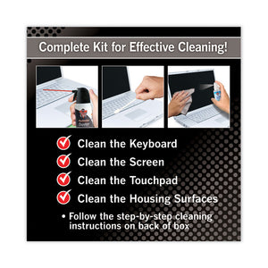 Help prolong the life of your laptop with this complete cleaning solution. 2-oz plant-based screen spray attracts dirt and dust leaving a streak free finish. The microfiber cloth removes dirt, smudges and fingerprints from screen and other surfaces and is also machine washable for repeat use. Also includes a Dust-Off 3.5-oz duster to keep keyboards and crevices dust- and lint-free. Four cleaning swabs are great for cleaning tight spaces.