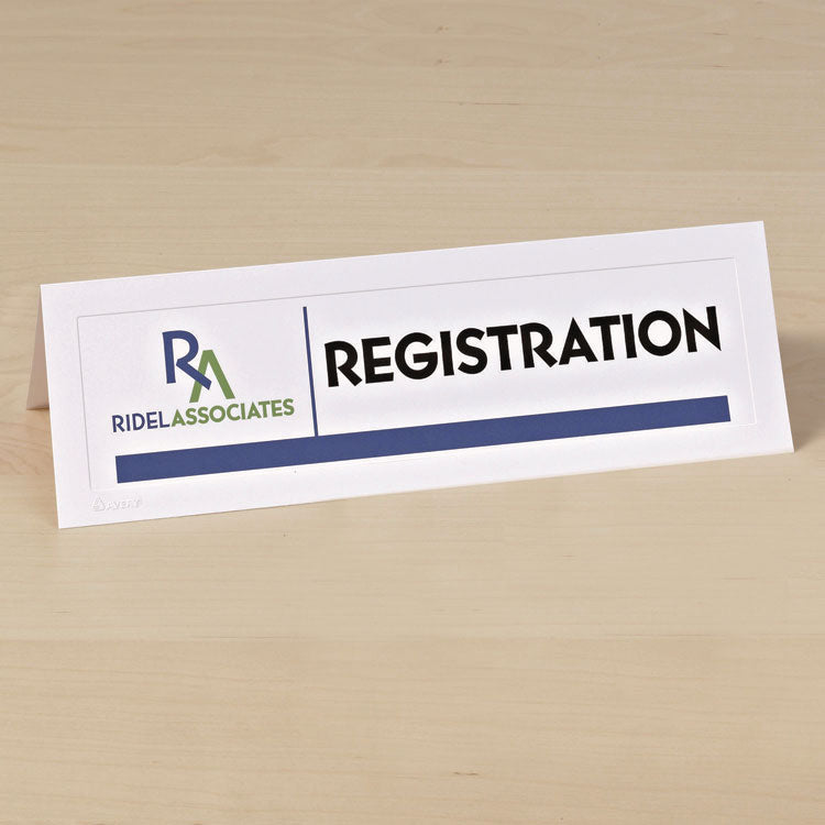 Add a personal touch to parties, events, meetings and celebrations with custom-printed place cards you can print at home. These tent cards feature premium, heavyweight cardstock that stands up to frequent folding, making them perfect for use as place cards, on buffets or as product description cards at boutiques, trade shows or farmers markets. Ultra-fine perforations let you separate cards cleanly and easily and are pre-scored. Personalize and print with our free designs and templates at Avery Design & Print. Bright vibrant colors and sharp clear text can be printed on both sides for a polished, professional look that will add a special feel to any event.