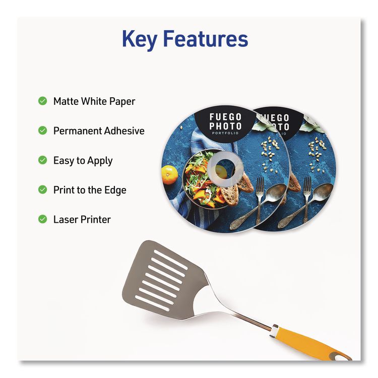 These CD labels allow you to create custom-made, professional-looking labels with a printed appearance for your business. Labels feature a unique, patented design which centers labels using a standard jewel case, and they're guaranteed not to lift, peel off or wrinkle. With free designs, QR codes, and templates from Avery® Design & Print, you can jazz up each label with high-resolution photos and graphics and then print them in minutes. 8.5" x 11" sheets.