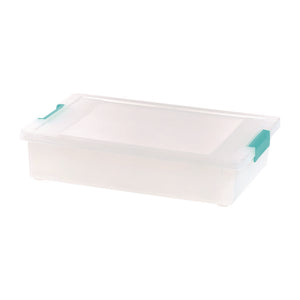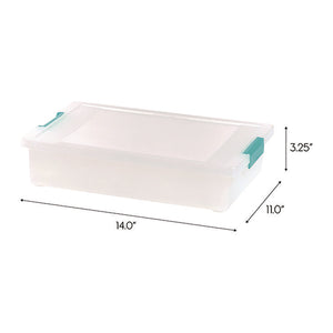 Latch Lid Storage Box, 2.3 gal, 14 x 11 x 3.5, Clear Bin/Seafoam Latches