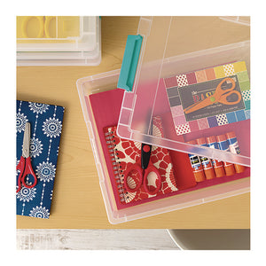 The IRIS letter box accommodates standard (8.5" x 11") paper, files, documents, notebooks, crafts, and school supplies. Durable buckle latches on the tote lid secure the contents inside. This is the perfect storage solution tool to store a variety of items at your home, office or school. Stackable for maximum storage.