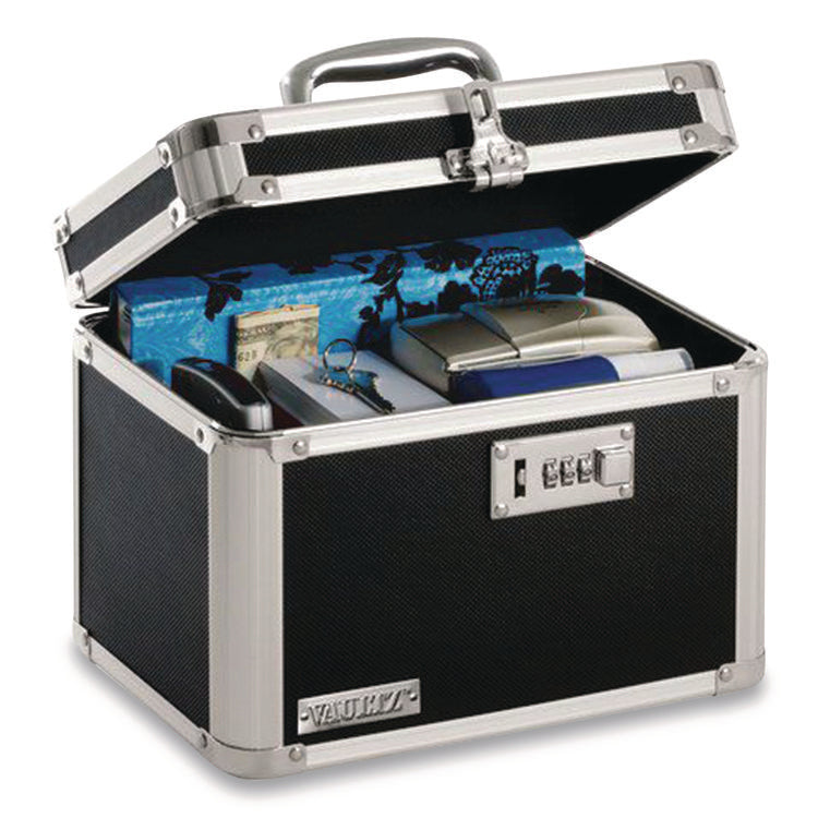 Latching Lid Locking Personal Security Box, Combination Lock, 10 X 7.5 X 7.75, Plastic; Steel; Aluminum, Black