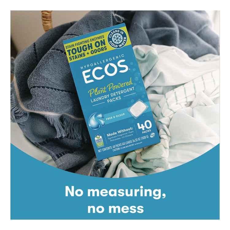 Laundry Detergent Packs, Free and Clear, 40/Pack