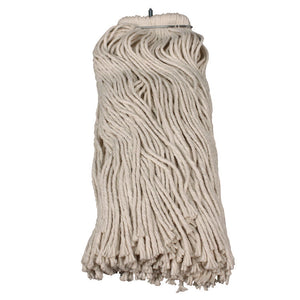 Reusable cotton mop head is suitable for commercial or residential general floor cleaning. Works well on smooth and rough surfaces. Made from grade 1 yarn with high tensile strength for long-lasting use.