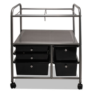 Letter/Legal File Cart with Five Storage Drawers, Metal, 5 Drawers, 21.63" x 15.25" x 28.63", Matte Gray/Black