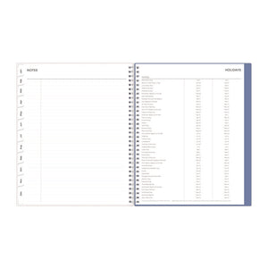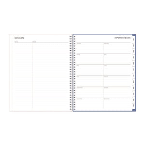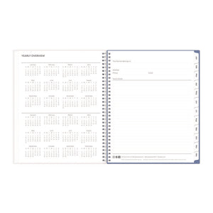 Add a touch of style to getting organized. Standard calendar year plus six bonus months of two-page spread per month. Weekly views per two-page spread offer ample writing space. Durable coated monthly calendar tabs allow for easy access to each month. Thick, premium acid-free pages reduce ink bleed-through. Features a double-sided paper storage pocket page. Durable frosted flexible front and solid back covers. Twin-wire binding finishes the look and offers easy page turning. Printed with soy-based ink.