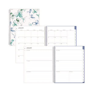 Lindley Weekly/Monthly Planner, Floral Artwork, 11 x 8.5, White/Blue/Green Cover, 12-Month (Jan to Dec): 2025