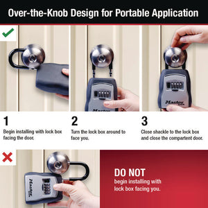 No more lockouts, no more schedule conflicts! Large key storage compartment holds more than five door, car or padlock keys. Four-dial resettable combination lock provides set-your-own combination convenience. Compartment door opens smoothly and remains attached for ease of use. Solid die-cast body withstands hammering and sawing, and the hardened steel shackle resists cutting. Zinc lock body and shutter door provide weather resistance. Molded bumper and vinyl-coated shackle prevent scratches to your property. For real estate sales, repair services, contractors and house/pet sitters.