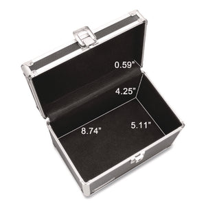 Heavy-duty file safely holds index cards. Ideal for important photos, documents and supplies, too. The reliable key lock keeps contents secure. Heavy-duty construction features aluminum trim reinforcements plus chrome steel corners and a soft felt interior, which offer durability and protection.