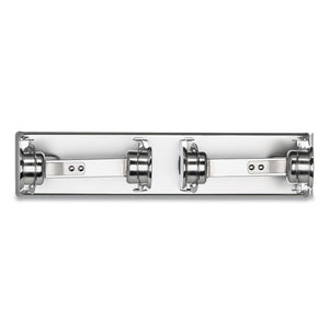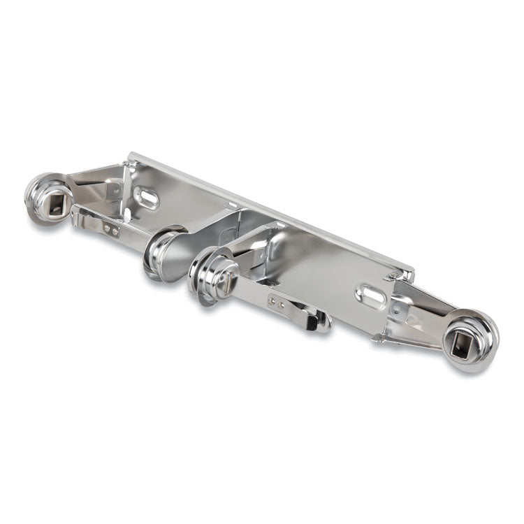 Tension springs prevent wasteful, free rolling of tissue. 20-gauge steel construction with anti-theft lock. Holds standard 1 1/2" core toilet tissue rolls.