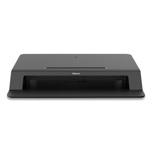 Easily transition from sitting to standing with gas spring height adjustment. Flexible set up; spacious top platform holds two monitors or a monitor and laptop and the bottom level perfectly holds a keyboard and mouse. Keep your phone or other accessories within reach with the convenient device channel on top platform. Arrives fully assembled - no complicated instructions, no mounting; just unpack and get started. Work comfortably sitting or standing with 15.5" of adjustment range. Compatible with Fellowes Lotus Monitor Single (8042801) and Dual (8042901) Monitor Arm Kit.