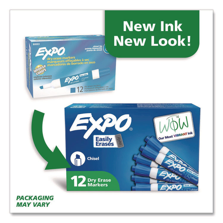 Create high impact marks and track, schedule and present clearly. High-quality ink-delivery system ensures consistent, skip-free results, while bold, vivid colors make it easy to see what's written from a distance. EXPO® Low-Odor Dry-Erase Markers always erase cleanly and easily from whiteboards and other non-porous surfaces such as porcelain, melamine and glass, simply with a dry cloth or a standard whiteboard eraser; but for optimal results, EXPO® whiteboard erasers are recommended. As their ink is specially designed to be low-odor and quick drying, they're the perfect dry erase marker for use just about everywhere: classrooms, offices, homes, boardrooms and more.