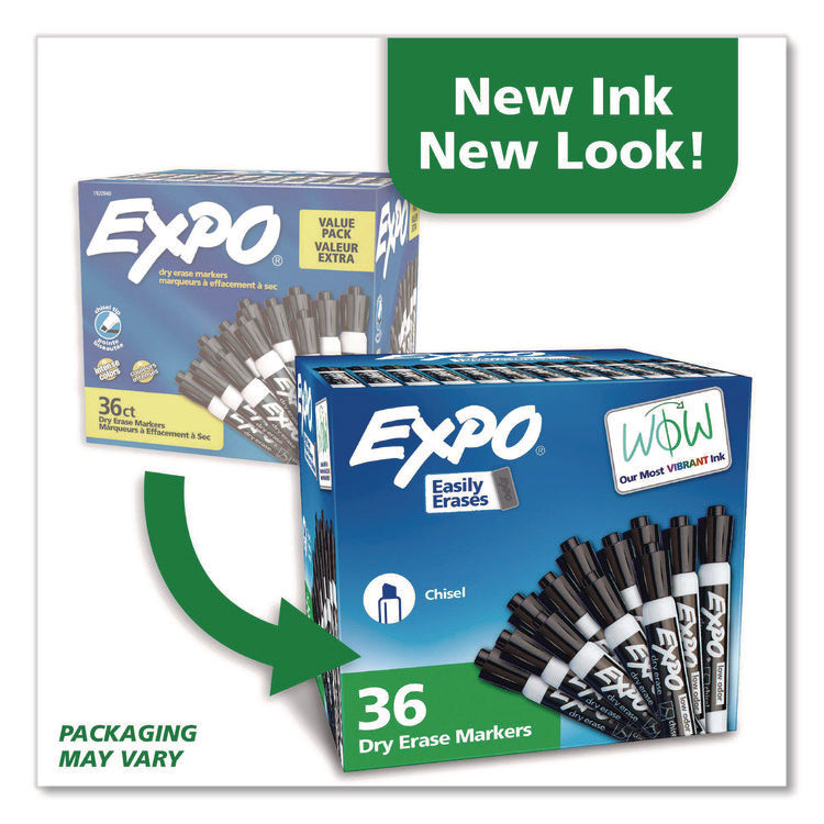 Low-Odor Dry-Erase Marker Value Pack, Broad Chisel Tip, Black, 36/box