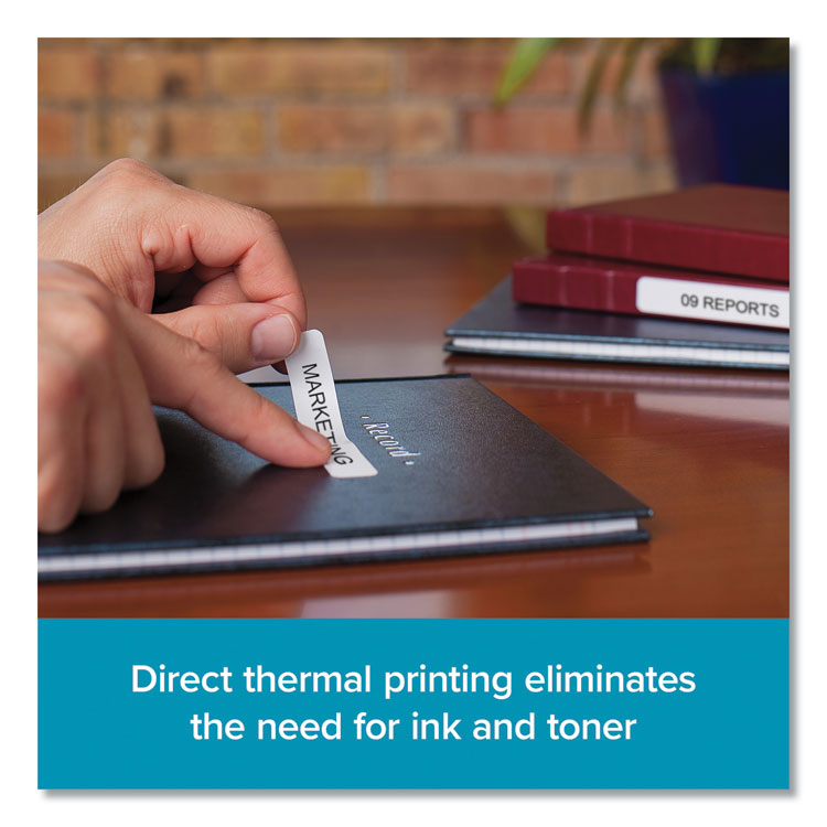 Quickly create file folder labels directly from your DYMO LabelWriter label maker with these 1-Up labels. Using a direct thermal printing process, you avoid the hassle of expensive ink or toner. Packaged in rolls, so you can print one shipping label or hundreds with ease. No more messy sheets, waste or sheet label jams.