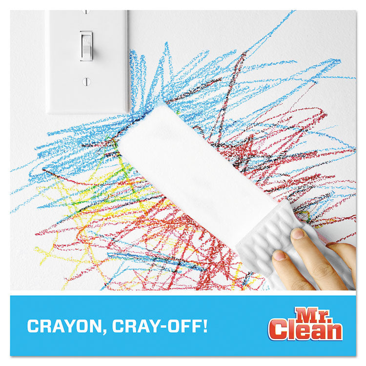 Mr. Clean Magic Eraser is a powerful all-purpose cleaner that removes scuff marks, dirt and grime from a variety of surfaces around your business. This Mr. Clean multi-surface cleaner uses innovative, textured, water-activated cleaning pads as micro-scrubbers to reach into surface grooves and lift away the toughest soils with water alone. It is 50% stronger than Mr. Clean Magic Eraser Original for heavy-duty cleaning, holds up to tough messes better, and lasts longer between replacements. A highly effective wall cleaner and door cleaner, it also works well on floors and other non-finished surfaces. It's ideal for use on kitchen appliances, tile and grout, and even grill grates, lawn furniture and more. One of the most powerful and versatile multi surface cleaners, it minimizes work, simplifies training, and helps save time and money. Stop wasting your time, energy and money stocking several cleaners when this one effective cleaner will do.