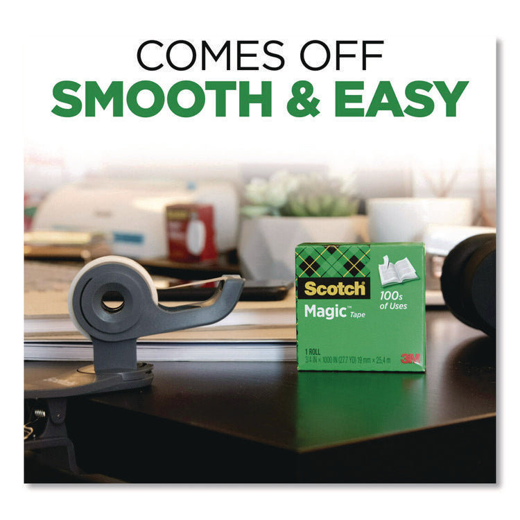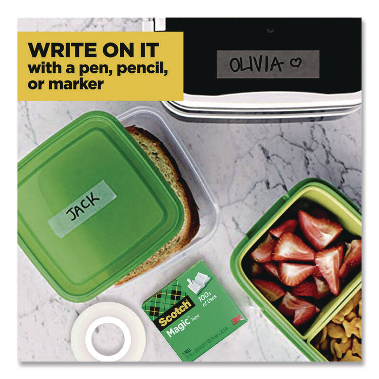 Scotch® Magic™ Tape works as hard as you do to fix all the little imperfections at home, school and the office. The Scotch® Brand's famous matte-finish invisible tape uses unique 3M adhesive technology to bond tightly with paper and disappear without a trace. Write on it with pencil, pen or marker-every word is loud and clear. Scotch® Magic™ Tape: Always ready for big ideas and everyday mends.
