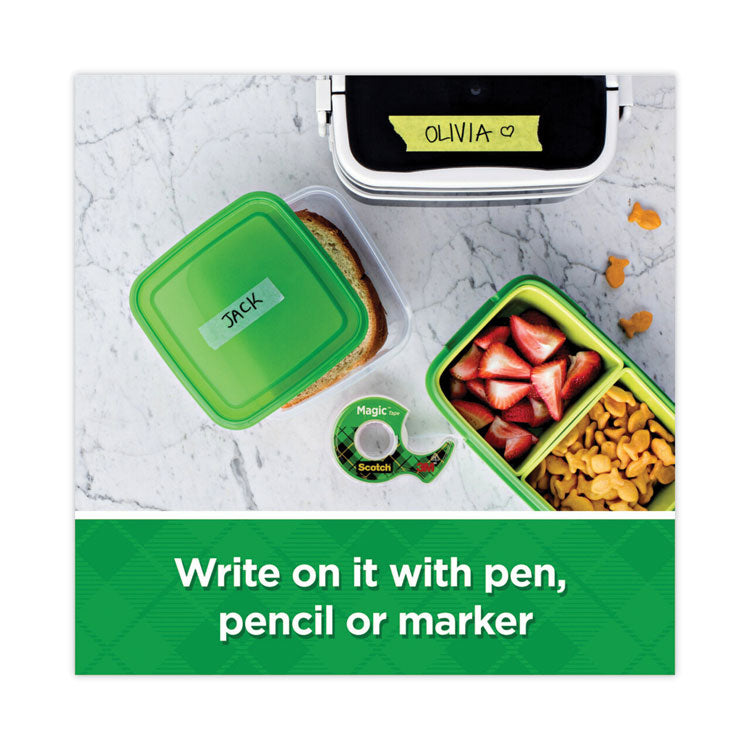 Scotch® Magic™ Tape works as hard as you do to fix all the little imperfections at home, school and the office. The Scotch® Brand's famous matte-finish invisible tape uses unique 3M adhesive technology to bond tightly with paper and disappear without a trace. Write on it with pencil, pen or marker-every word is loud and clear. Scotch® Magic™ Tape: Always ready for big ideas and everyday mends.