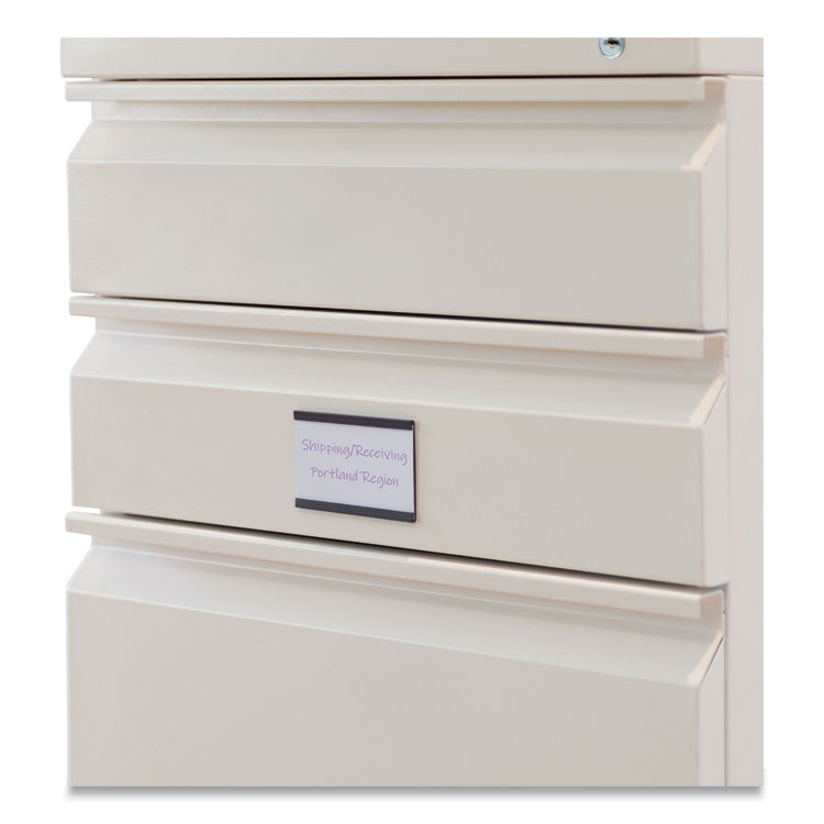 View Details- Strong magnetic material label with side slots to hold cardstock labels.