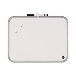Effortlessly brainstorm, take notes, and present with this MasterVision Magnetic Dry Erase Board! The framed lacquered steel surface is designed for smooth, easy writing and can be used with any dry erase marker to write notes or draw diagrams. Plus, because the surface is also magnetic, it can display schedules, notes, and other printed documents to best facilitate its ever-changing purpose.