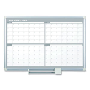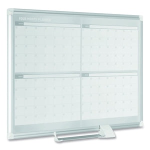 Magnetic Dry Erase Calendar Board, Four-Month Planning/Scheduling, 48" x 36", White Surface, Satin Aluminum Frame