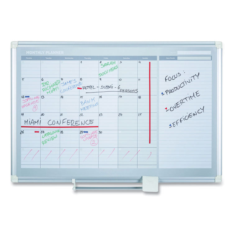 Magnetic Dry Erase Calendar Board, Monthly Planning/Scheduling, 36" x 24", White Surface, Satin Aluminum Frame