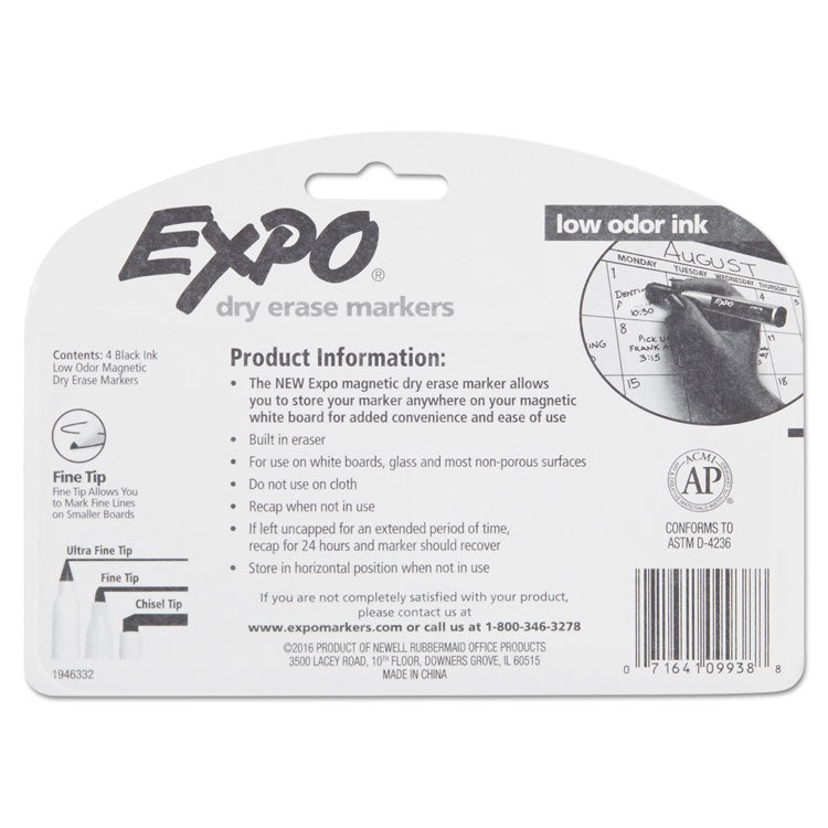 Magnetic Dry Erase Marker, Fine Bullet Tip, Black, 4/pack