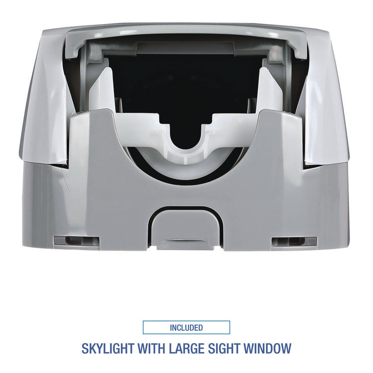 This soap dispenser holds a large sealed refill in a remarkably small footprint. It is great for locations where a smaller, more traditional dispenser is preferred. It features simple, one handed push operation. The skylight with large sight window makes it easy to see when the dispenser needs to be refilled. Optional key lock available.