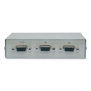 Turn your home or office PC into a versatile, multi-faceted workstation with this VGA/SVGA switch. Tripp Lite's 2-Port Manual VGA/SVGA Switch is the optimal solution for connecting two computers to one monitor or two monitors to one computer. The 2-Port Manual VGA/SVGA Switch features a fully-shielded rugged metal case with front-panel push-button switching. Interior printed circuit board design allows for crystal clear resolutions up to 1600x1280. It does not require any AC power to operate.