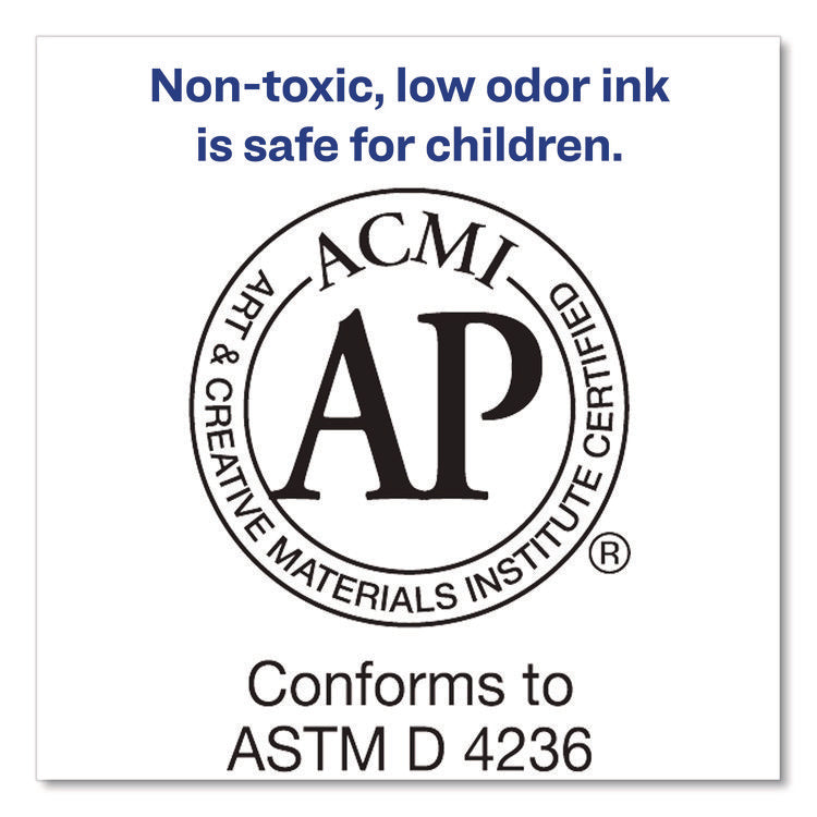 Get your thoughts across with MARKS A LOT® Desk-Style Dry Erase Markers. Their versatile chisel tips allow you to vary the width of your strokes depending on the scenario, from bold and thick to narrow and fine. Featuring wonderful color vibrancy, their ink is not only formulated to catch your audience's attention but to erase easily and cleanly from whiteboards, glass, lamination film and other nonporous surfaces with a simple sweep of a board eraser or a dry cloth. Certified non-toxic, low-odor formula is ideal for school, work, home and more—use them virtually anywhere. You can even leave their caps off for up to 24 hours without them drying out!